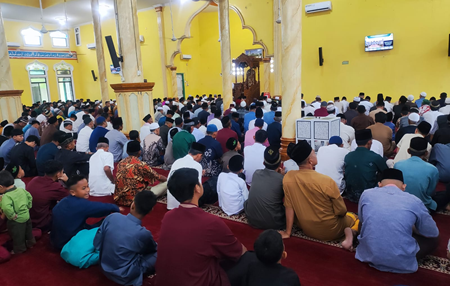 Bertindak sebagai Imam sekaligus Khatib pada kesempatan tersebut adalah Hasbullah Yamin, S.Ag, dengan Jayo sebagai Muazin.